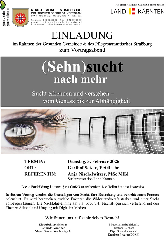 Einladung Gesunde Gemeinde & Pflegestammtisch: Vortrag zum Thema Suchtprävention