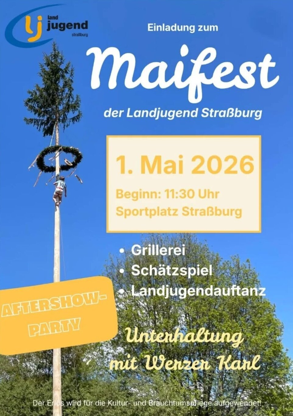 Auch dieses Jahr findet am 1. MAI 2026, Beginn 11:30 Uhr wieder unser Maifest am SPORTPLATZ STRASSBURG statt.