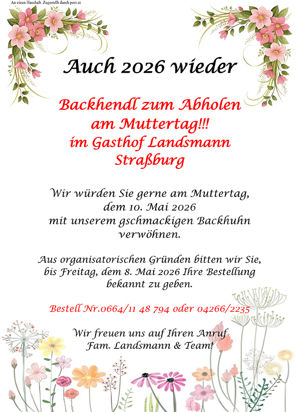 mit unserem gschmackigen Backhuhn verwöhnen.