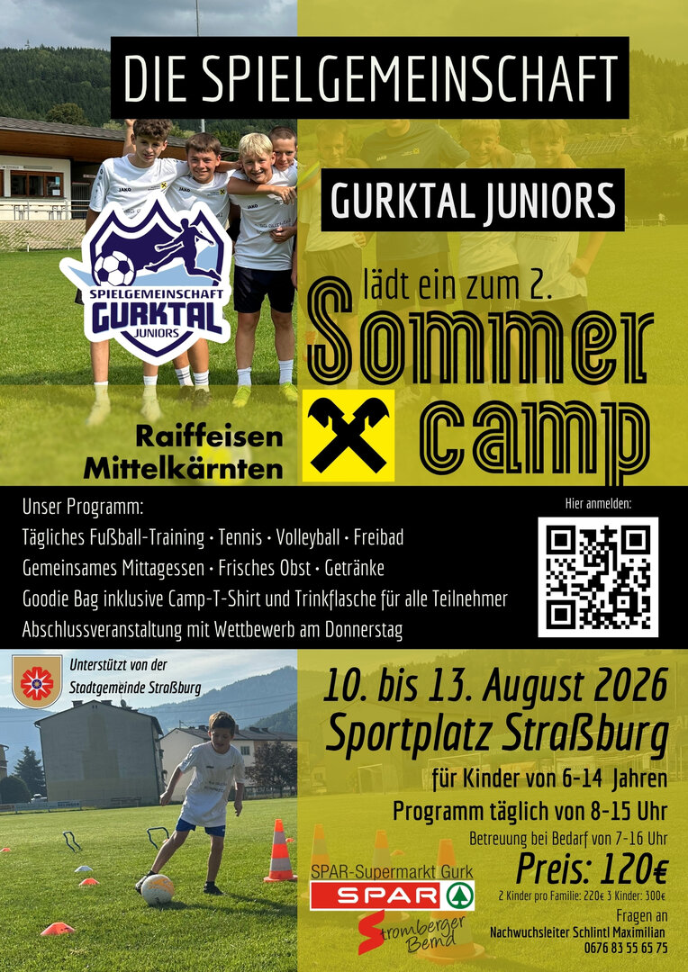 Von 10. bis 13. August 2026 veranstalten die Gurktal Juniors am Sportplatz Straßburg ihr zweites Sommercamp