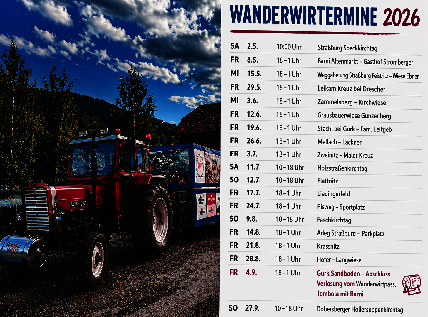 Auch heuer sind wir wieder fleißig in unserer Gemeinde und den Nachbargemeinden unterwegs und dürfen euch beim Wanderwirt begrüßen.