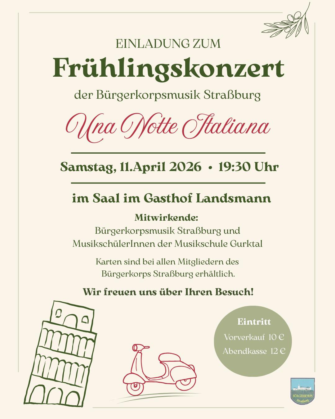 Wir laden euch recht herzlich zu unserem Frühlingskonzert unter dem Motto „Una Notte Italiana“ ein.