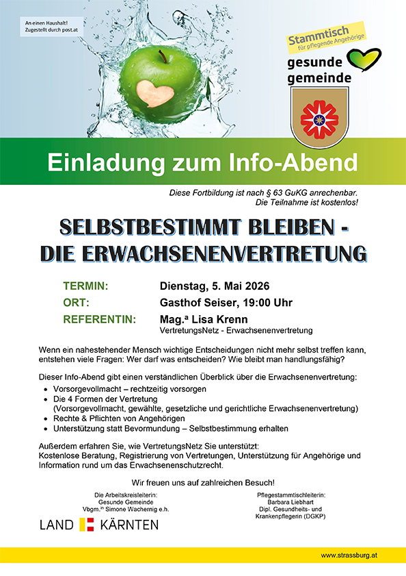 Einladung Gesunde Gemeinde & Pflegestammtisch zum Infoabend vom VertretungsNetz